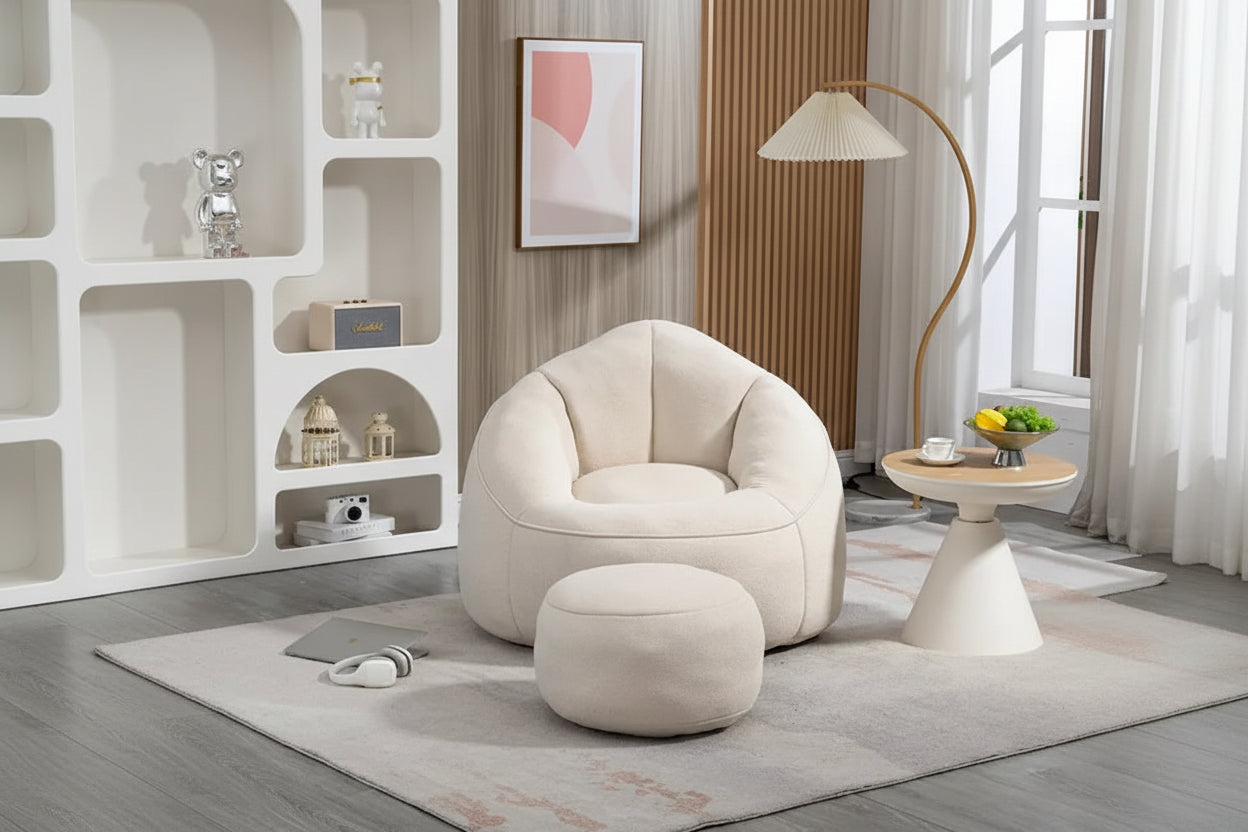 Fauteuil d'appoint en microfibre beige avec ottoman – 1 place