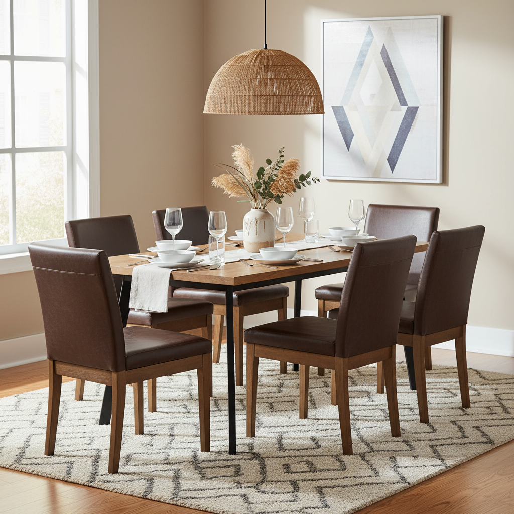 Chaise de salle à manger sans accoudoirs en similicuir marron avec pieds en bois d'hévéa